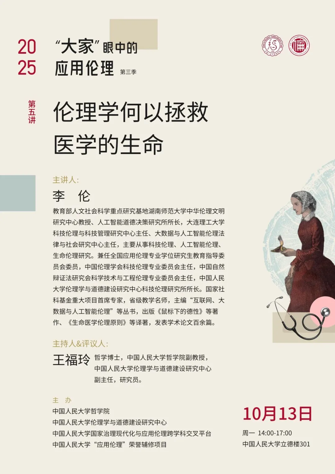 “大家”眼中的应用伦理 第三季 第五讲 | 伦理学何以拯救医学的生命——对“杜治政之问”的一个初步分析和响应